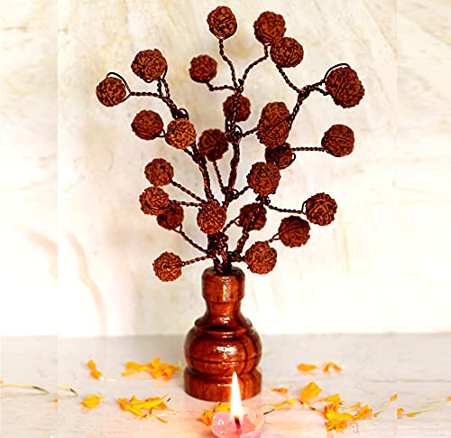 The unique Rudraksha-Tree/Bouquet made with original 5 Face (Paanch Mukhi) rudraksh. Keeping Rudraksha plants in the house is considered very lucrative. This handmade Rudraksha plant attracts a lot of people. Keeping it always blesses Lord Shankar's grace in our home and office. Rudraksha is contemplated as the eye of Shiva. Rudra means Shiva and Akasha means Aansu Tears. According to mythology, it is believed that Rudraksha is obtained from the tears of Shiva. Health Benefits improve meditative focus, evil and negative energies, stress relief, heart-related problems, hypertension, anxiety, and depression, concentration power, positive attitude, financial growth, career growth, promotion, and authoritative position in life, and so on.