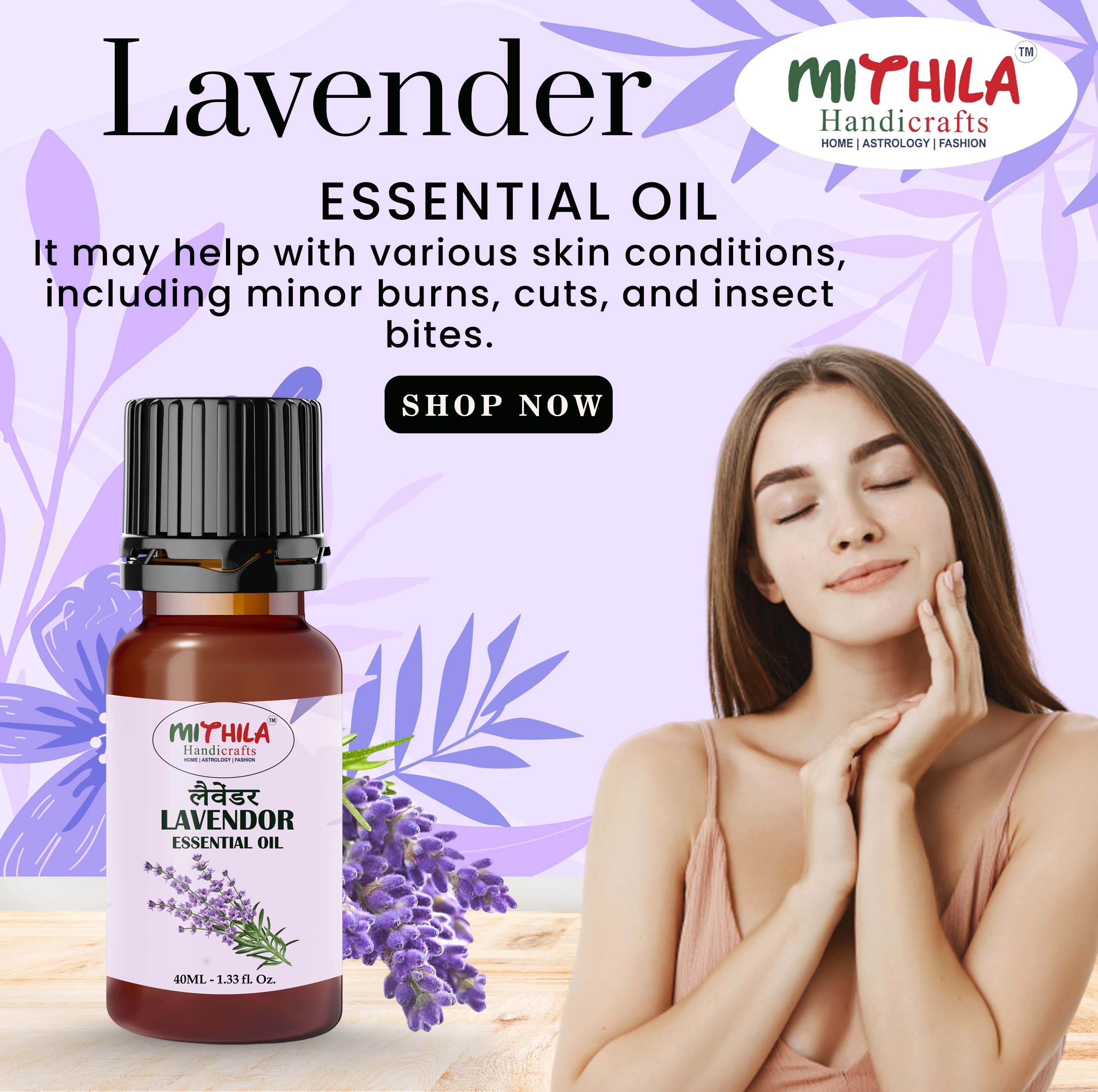Artisan Craftsmanship: Crafted with precision by Mithila Handicrafts, blending traditional techniques with contemporary quality standards to offer you a premium Lavender Essential Oil experience.