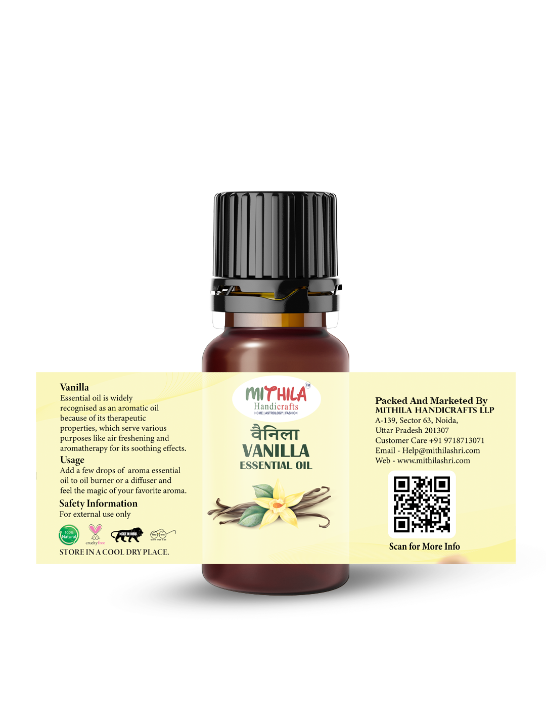 Artisan Craftsmanship: Crafted with precision by Mithila Handicrafts, blending traditional techniques with contemporary quality standards to offer you a premium Vanilla Essential Oil experience.