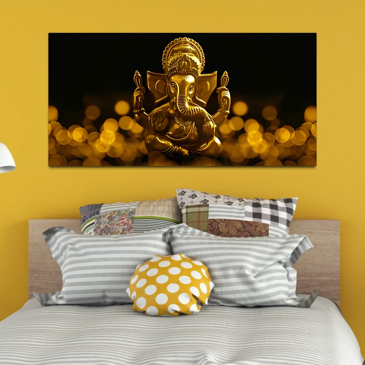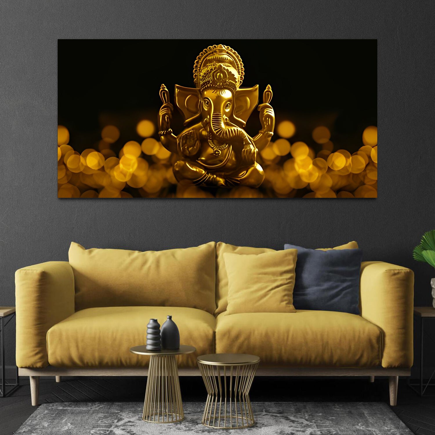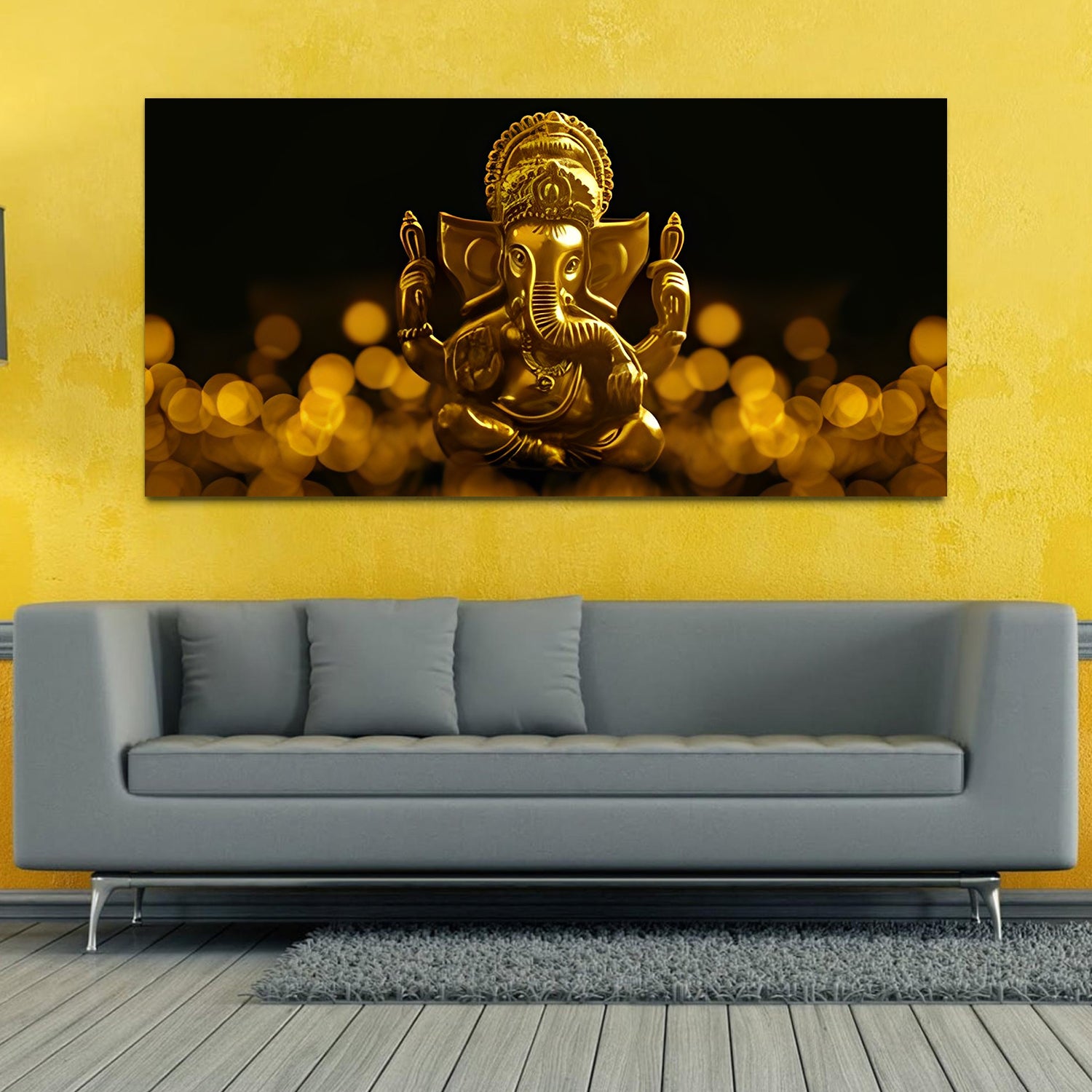 Premium Golden Lord Ganesha Canvas Wall Paintings