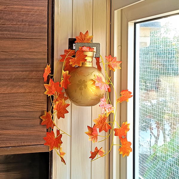 ROUND GLASS VASE (GOLD) WITH IRON HANGER ARTIFICIAL GOLDEN MAPEL PLANT