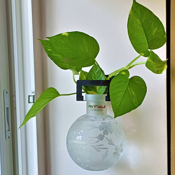 This Beautiful Frosted Flower Design Vase With Iron Hanger can be placed with natural and artificial plants, flowers, money plant, lucky bamboo plants etc. Unique and elegant showpiece to complete the beauty of your house. Easily Hang On Your Wall Perfect addition to your Home Decor, Living Room, Bedroom, Center Table, Side corners, Dining Room, Work Place and for Gift Purpose. Plants are the best source of freshness and positive energy.
