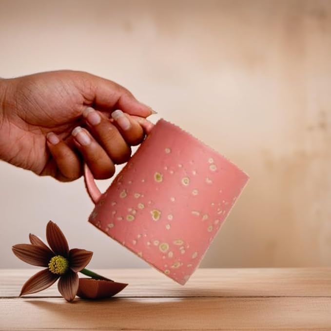MITHILA HANDICRAFTS Shine Coffee Mug Ceramic Tea Mugs, Microwave Safe Coffee Mugs,Ceramic Tea Cups (280 ml Each) Set of 2 (Pink)