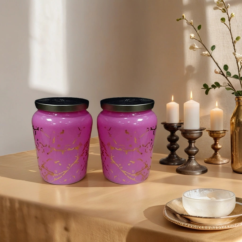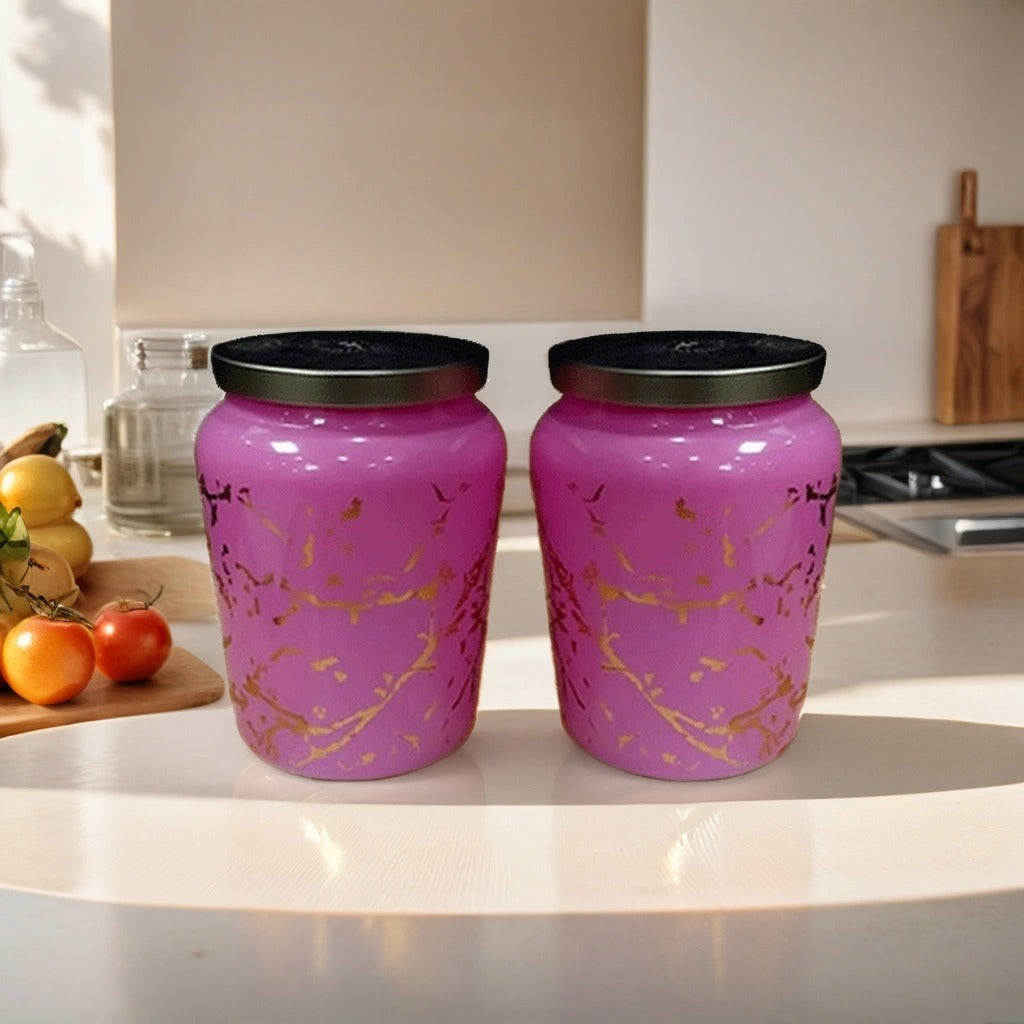 Mithilashri Decorative Pink Storage Jar- Set of 2 (600 ml)
