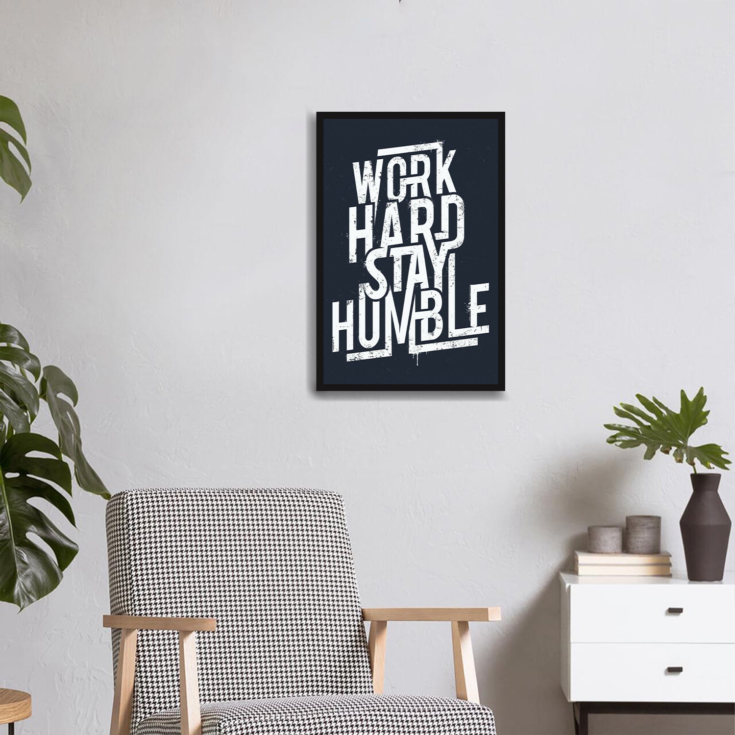The virtues of diligence and humility with our 'Work Hard Stay Humble' Single Wooden Wall Frame. Crafted with exquisite attention to detail, this frame combines the elegance of wood with a powerful message. Its minimalist design and impactful quote serve as a constant reminder to strive for success while maintaining a humble attitude. Whether placed in a home office or living space, this frame adds a touch of motivation and sophistication to any environment. Let it inspire you to achieve greatness with grace and humility.