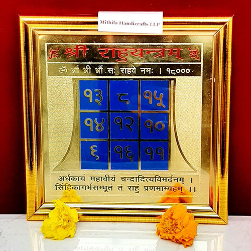 Rahu yantra is to protect from malefics of planet Rahu. It is helpful for those who prefer to shield their lives against mishaps and accidents. This Yantra blesses with good health, longevity, and disease-free life. Rahu can be appeased through devoted worship and chanting of Rahu mantra to prevent hidden enemies, wrong diagnosis of illness, deceit from those around us and negative energies from affecting well-being. It may be placed near the entrance of the home/ office/ shop or in the living room/ at reception/ study room or office cabin. Yantra is best placed in the East direction.