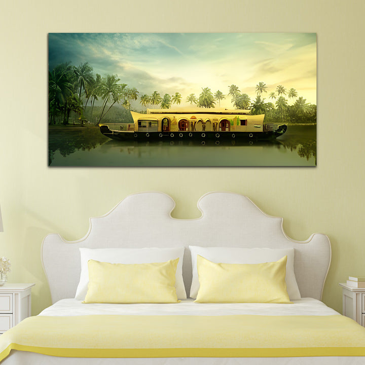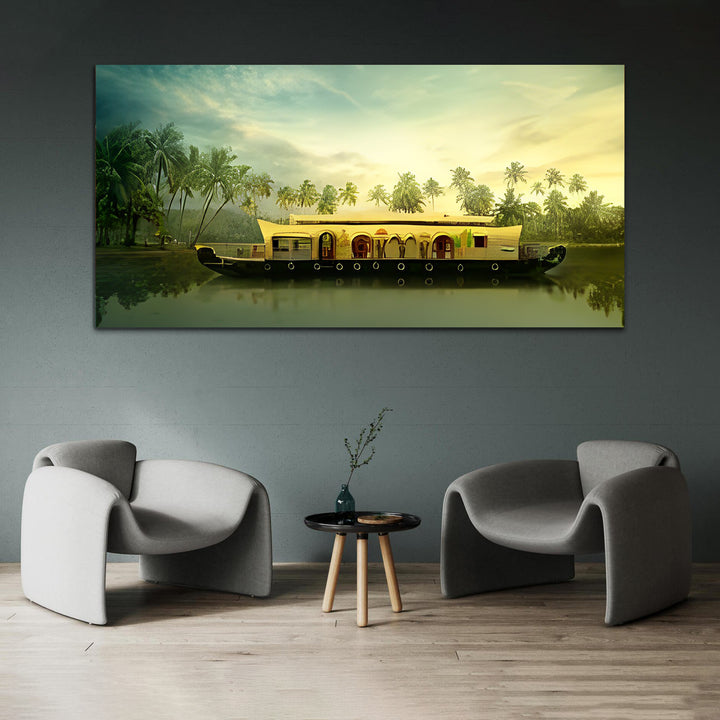 The mural begins with a majestic mountain range that stretches across the entire wall. The mountains are intricately detailed, with rocky surfaces and deep crevices that create a sense of rugged beauty. Shades of cool blues and grays dominate this section, conveying a serene and timeless atmosphere.