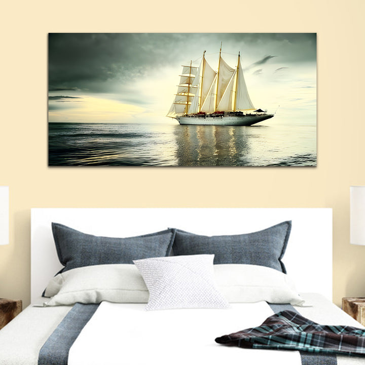 The mural begins with a majestic mountain range that stretches across the entire wall. The mountains are intricately detailed, with rocky surfaces and deep crevices that create a sense of rugged beauty. Shades of cool blues and grays dominate this section, conveying a serene and timeless atmosphere.