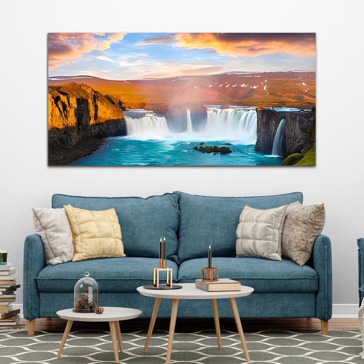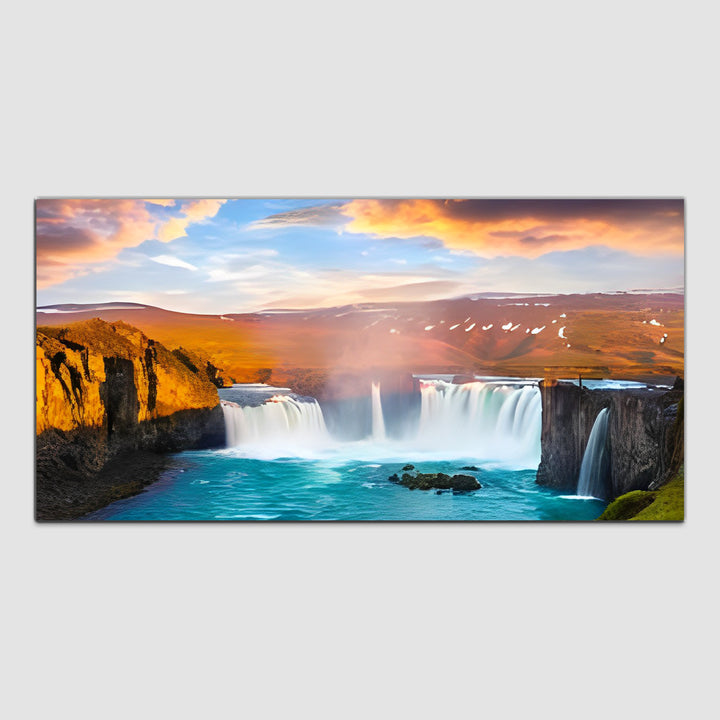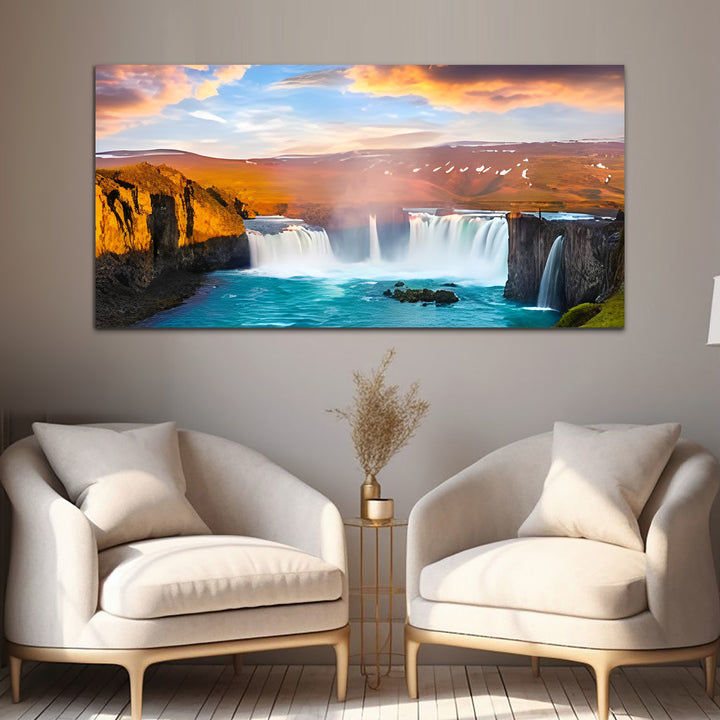 Beautiful Sunset with Bright Red & Blue Sky Reflecting on the Water Canvas Wall Painting