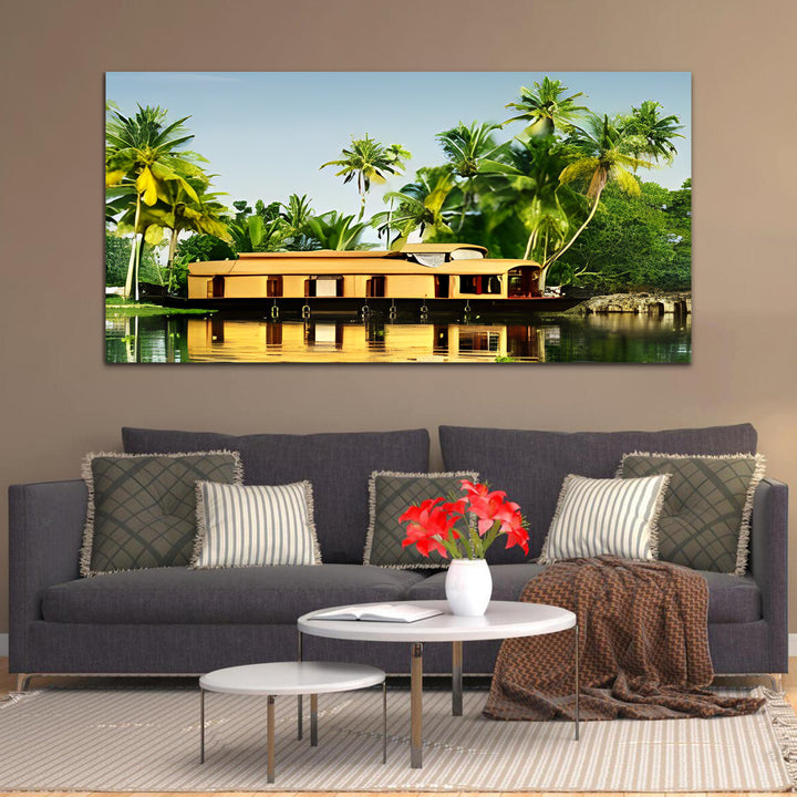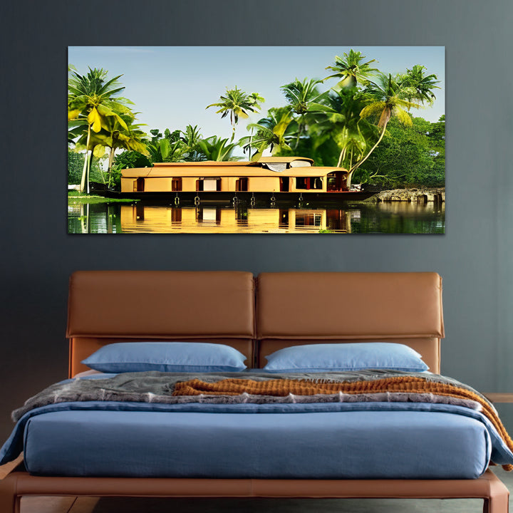 The mural begins with a majestic mountain range that stretches across the entire wall. The mountains are intricately detailed, with rocky surfaces and deep crevices that create a sense of rugged beauty. Shades of cool blues and grays dominate this section, conveying a serene and timeless atmosphere.