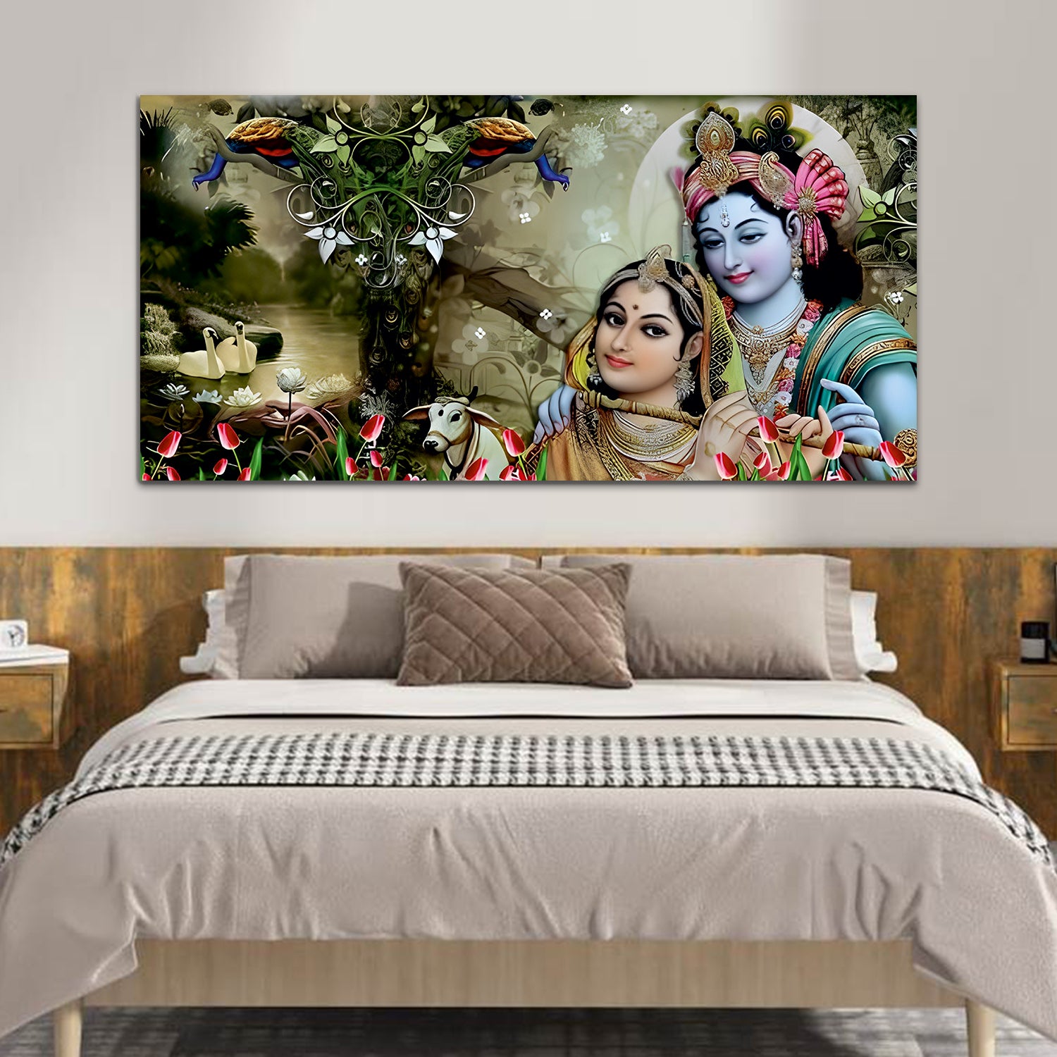 Radha-Krishna wall painting can evoke a sense of divine love and beauty. A home is a place where we relax our bodies, rejuvenate our homes, and revitalize our minds. We don’t want to put up artwork in our home that is too loud or just too different from what we desire in life.Radha Krishna’s love story is the most beautiful example of the “supreme emanation of divine vibrations.” No wonder they are the best gift for every occasion to bring in the good vibes in your humble abode.