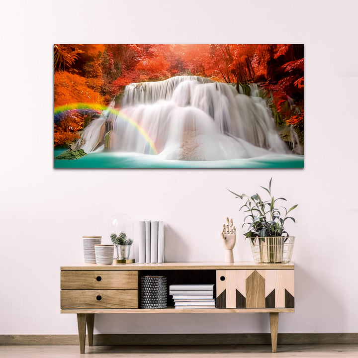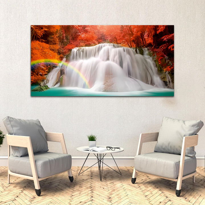 Jungle Rainbows with Waterfall Canvas Wall Painting