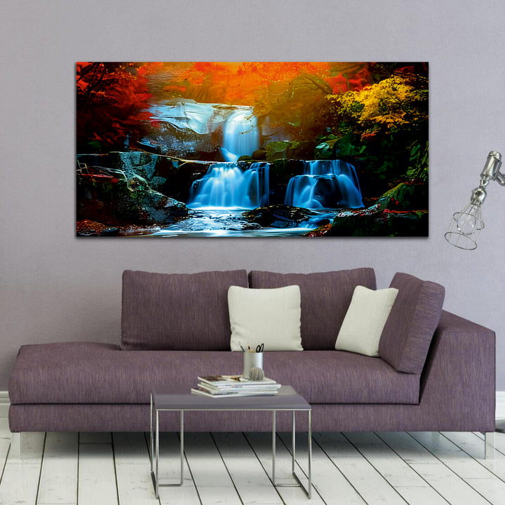 Autumn Leaves and Waterfall Living Bed Room Canvas Wall Painting