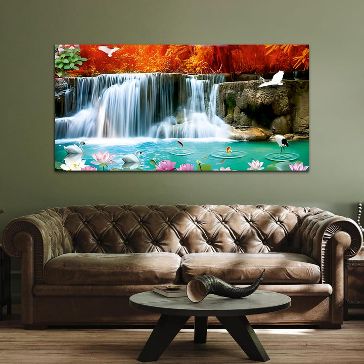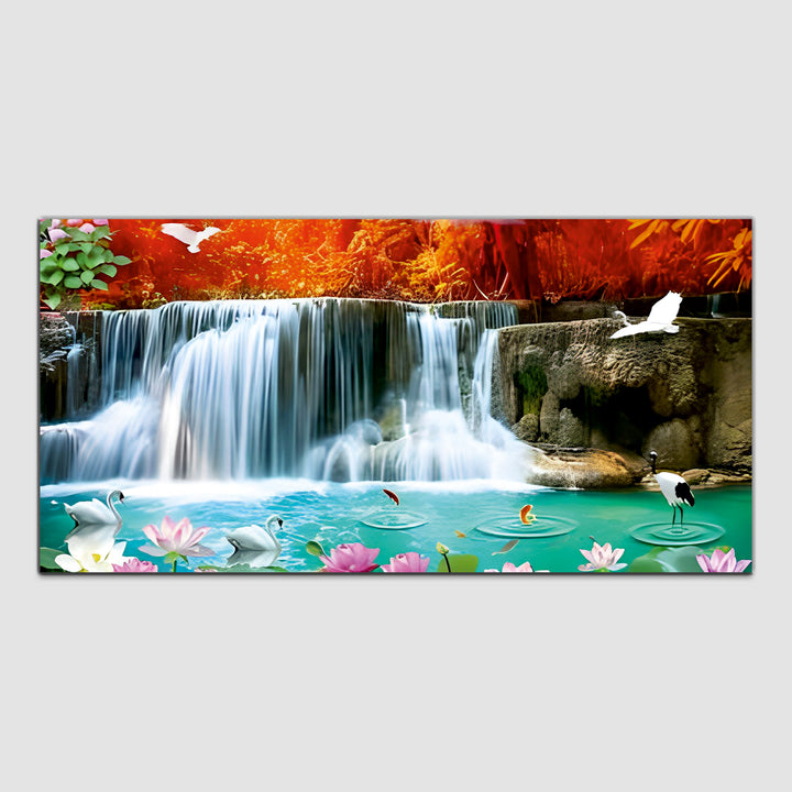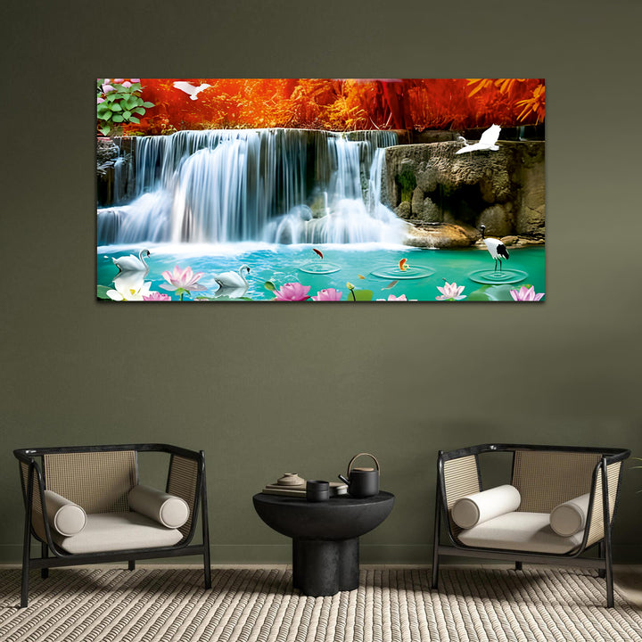 Waterfall Swan Canvas Wall Painting