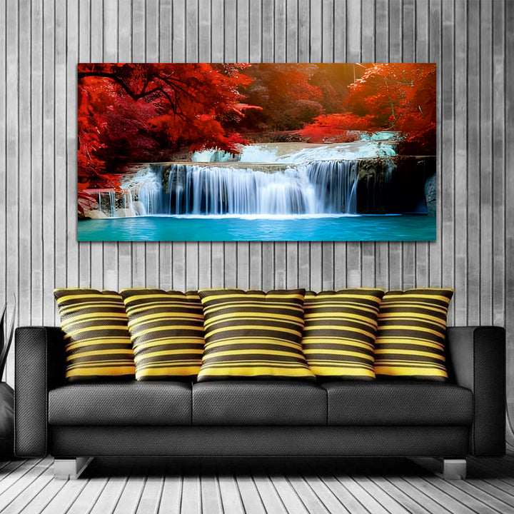 Waterfall Red-White Canvas Wall Painting