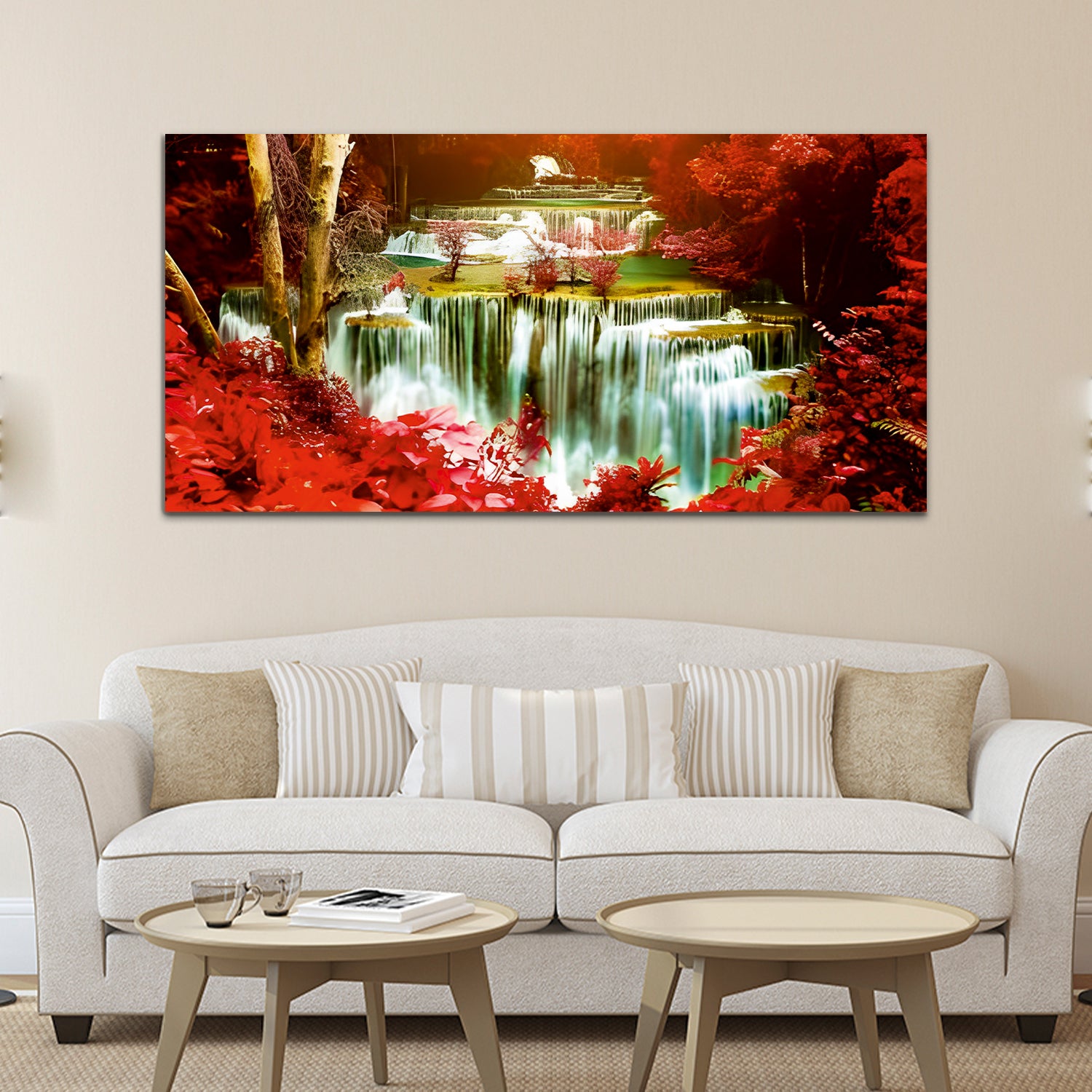 Waterfall Red-White Canvas Wall Painting