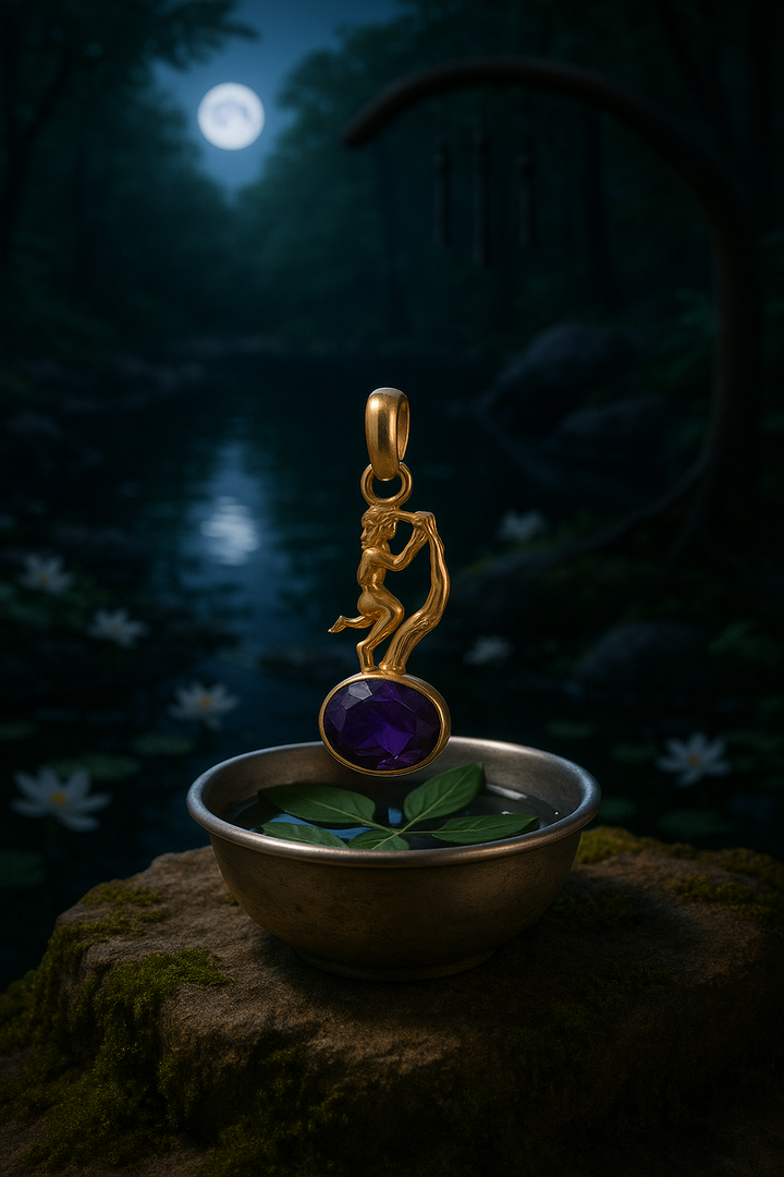 Amethyst Panchdhatu Pendant – Aquarius Zodiac Design | Lab Certified