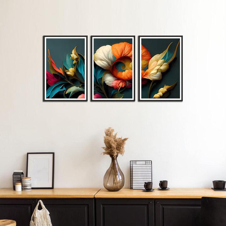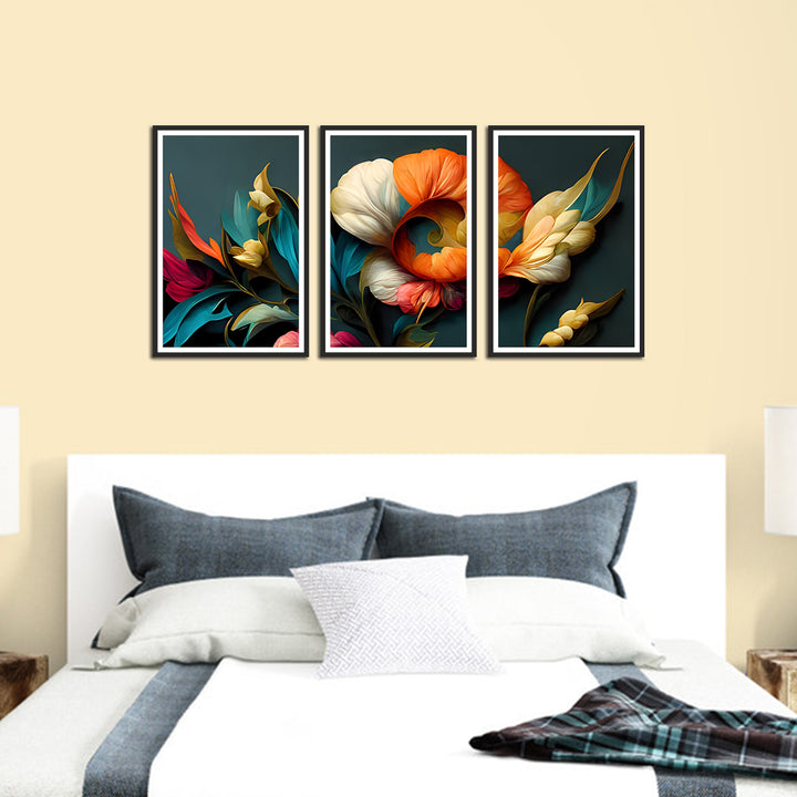 Beautiful Colorful Flowers Wall Painting Set of 3