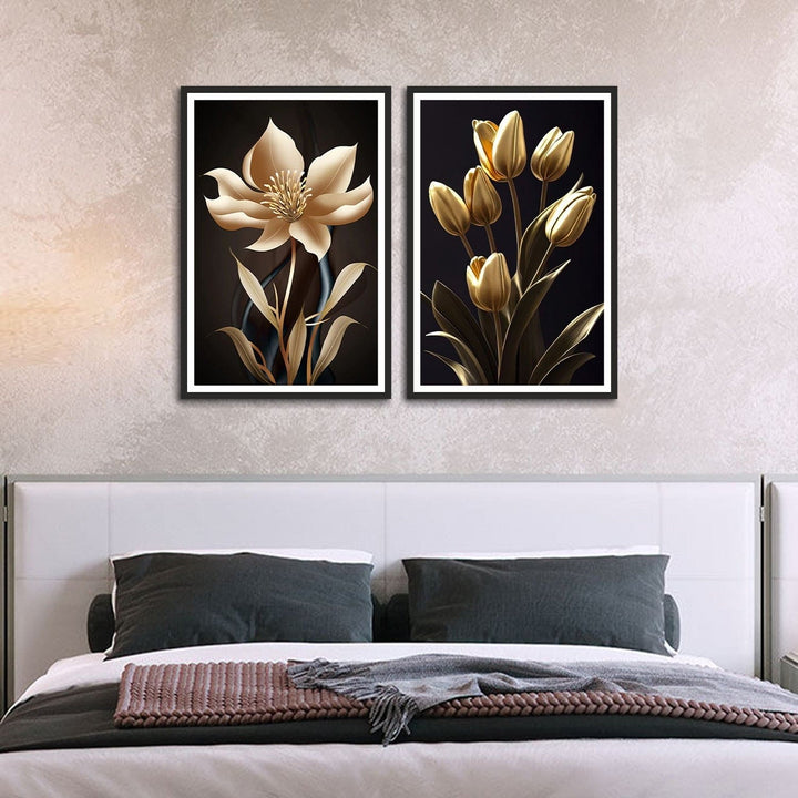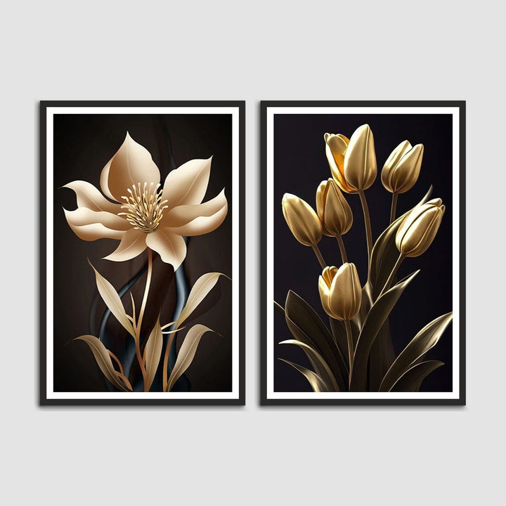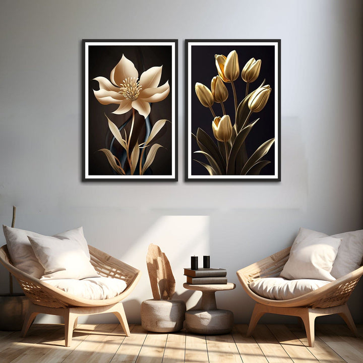 Beautiful Flower and Bud Set of 2 Wall Frames