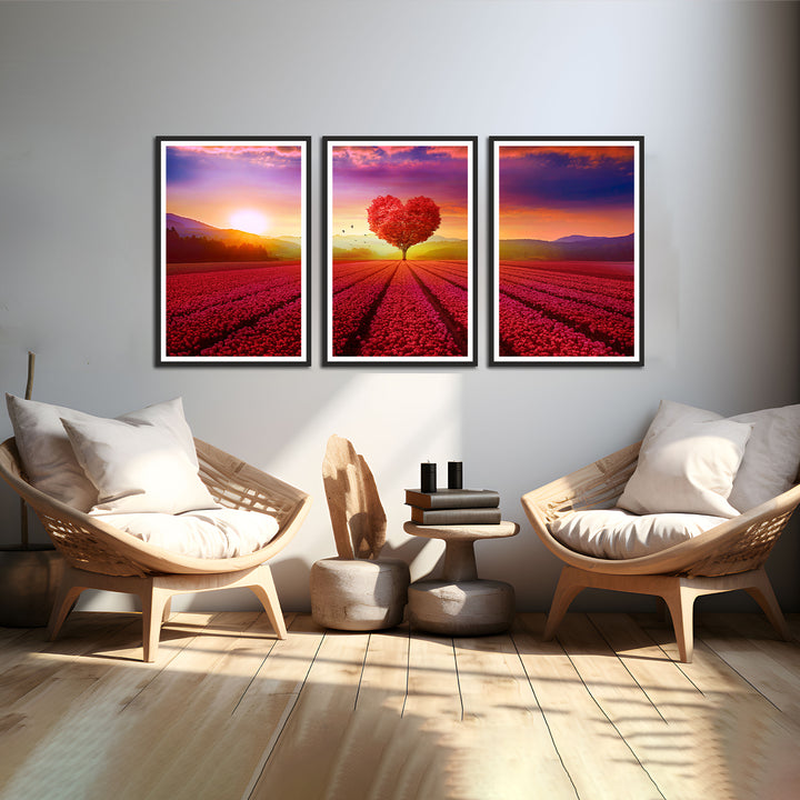 Beautiful Flower Garden with Sunrise Set of 3 Wall Painting