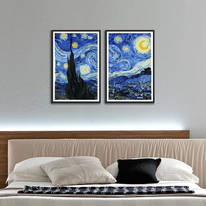 Beautiful Premium Village Scenery Set of 2 Wall Frames