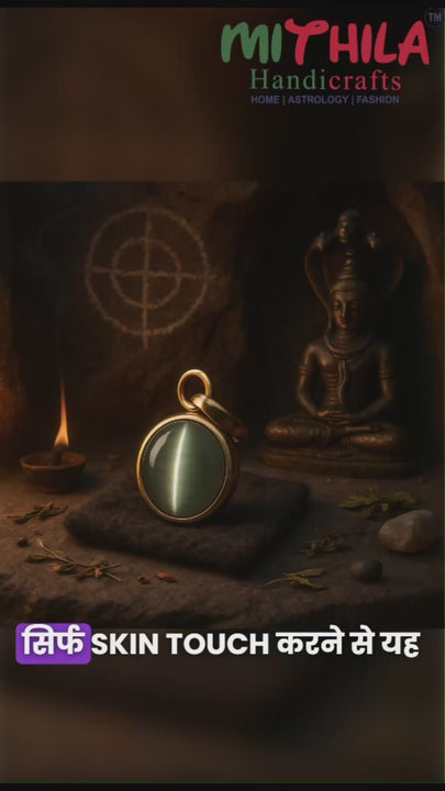 The Mithilashri Cat’s Eye Panchdhatu Pendant is a powerful astrological tool, designed to channel the mystical energy of planet Ketu. Featuring a natural, lab-certified Cat’s Eye (Lahsunia) gemstone, this pendant is ideal for spiritual seekers, astrology enthusiasts, and those undergoing Ketu's influence.