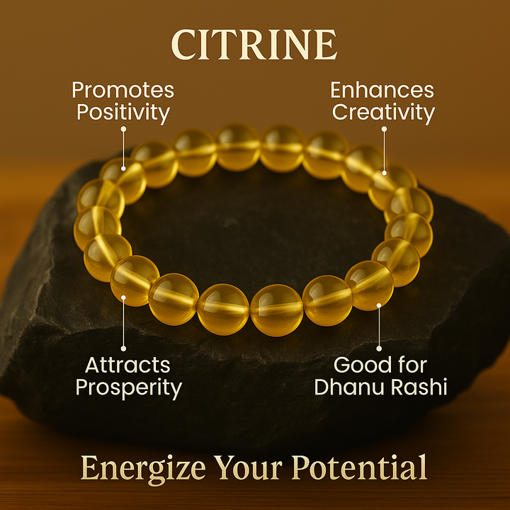 The Citrine Bracelet is a vibrant and energizing accessory, made from pure 8mm natural Citrine beads, strung on a durable stretchable nylon cord. Known as the "Stone of Success" and associated with the planet Jupiter, Citrine is believed to attract abundance, creativity, and personal power. Its bright golden energy activates the solar plexus chakra, promoting confidence, clarity, and positive thinking. Ideal for entrepreneurs, students, and spiritual seekers, this bracelet helps remove self-doubt and manifest prosperity. Each piece is cleansed and spiritually energized before dispatch, making it both a powerful tool and a radiant addition to your daily wear.