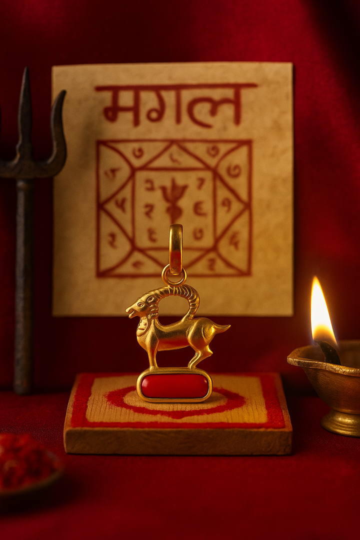 The Coral (Moonga) Panchdhatu Pendant is a powerful astrological remedy associated with planet Mars (Mangal)—the planet of energy, courage, and determination. This pendant features a natural, lab-certified red coral gemstone, known for boosting vitality, strength, and emotional stability.