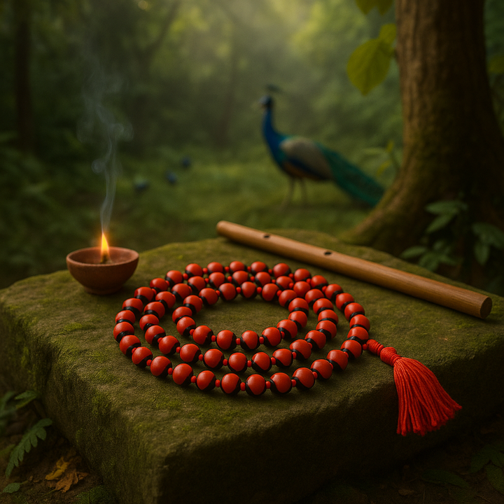 The Gunja Mala is crafted from 108 sacred Gunja seeds (also known as Abrus precatorius), traditionally found in red with a black or white eye. This powerful and rare mala is especially associated with Lord Hanuman, Tantric rituals, and occult protection.