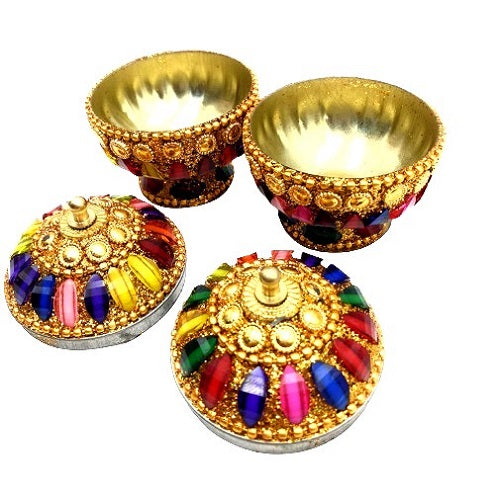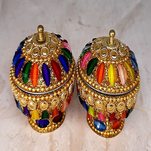 JEWELD TRINKET BOX WITH MULTI COLOR GEMSTONES - SET OF 2 -Size 6 x 6 x 6 cm