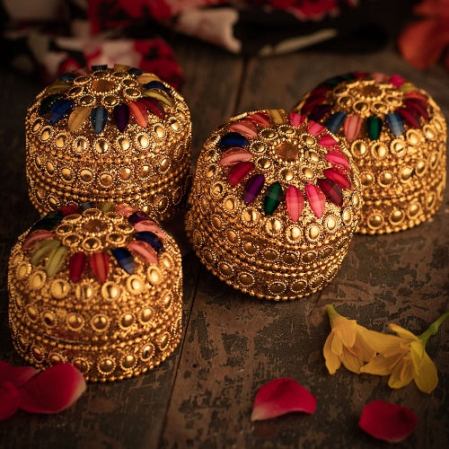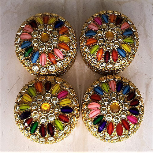 JEWELD TRINKET BOX WITH MULTI COLOR GEMSTONES - SET OF 4 - Med-Size 4 x 6 X 6 cm