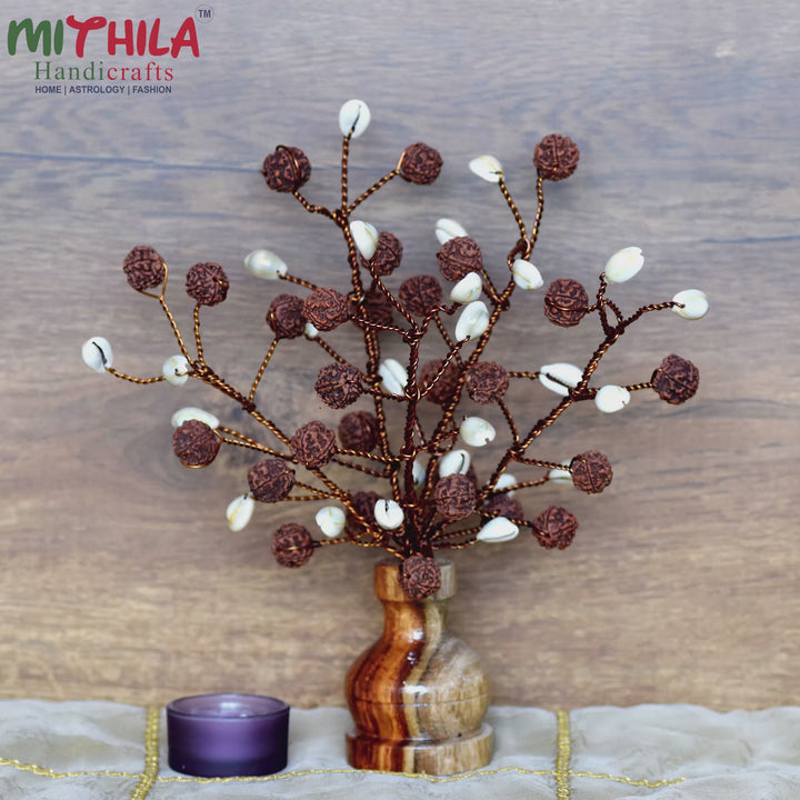 The unique Rudraksha-Tree/Bouquet with original hand-painted 5 Face (Paanch Mukhi) rudraksh. Keeping Rudraksha plants in the house is considered very lucrative. This handmade Rudraksha plant attracts a lot of people. Keeping it always blesses Lord Shankar's grace in our home and office. Rudraksha is contemplated as the eye of Shiva. Rudra means Shiva and Aksha means Aansu Tears. According to mythology, it is believed that Rudraksha is obtained from the tears of Shiva. Health Benefits improve meditative focus, evil and negative energies, stress relief, heart-related problems, hypertension, anxiety, and depression, concentration power, positive attitude, financial growth, career growth, promotion, and authoritative position in life, and so on.