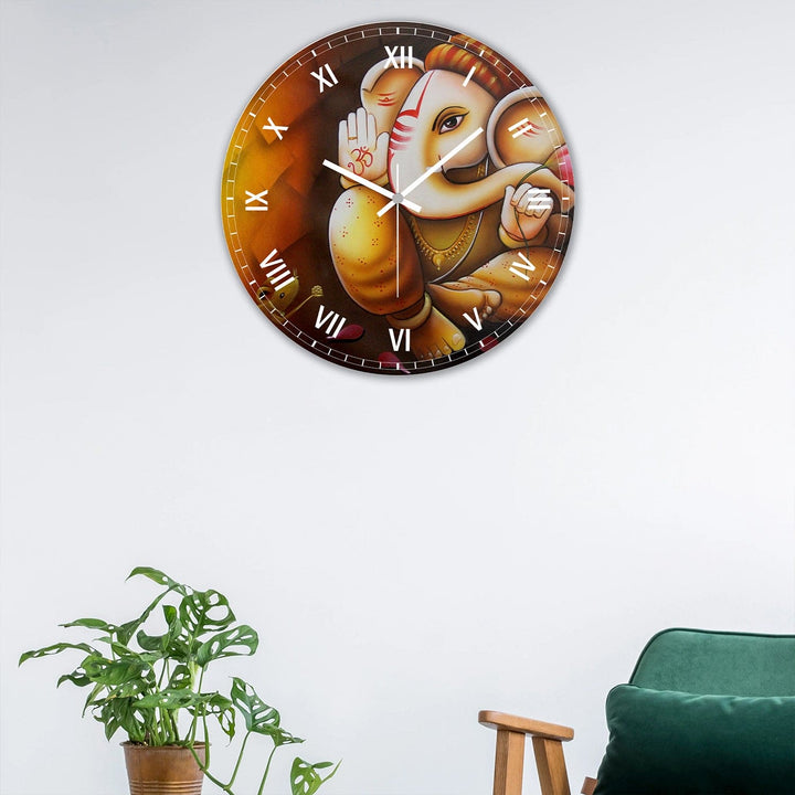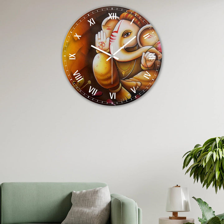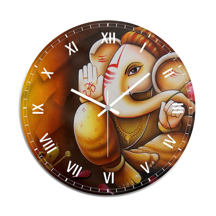 A Lord Ganesha Premium Wall Clock is a stunning blend of artistry, spirituality, and functionality. This exquisite timepiece features a captivating depiction of Lord Ganesha, a revered deity in Hinduism known for wisdom, prosperity, and the removal of obstacles.The clock's dial is designed to complement the Ganesha artwork, often featuring harmonious colors and easy-to-read numerals or symbols. Precise quartz movement powers the clock, ensuring accurate timekeeping, while silent mechanisms are sometimes included for a peaceful ambiance.