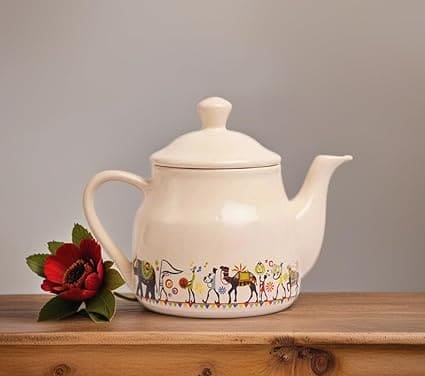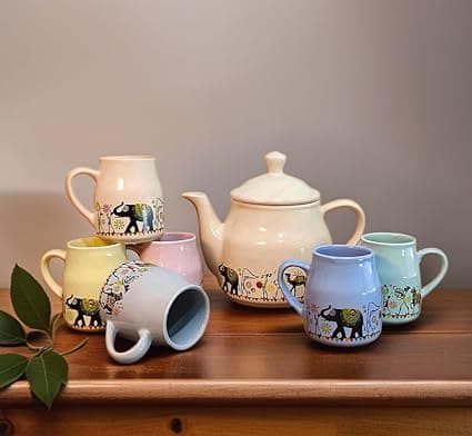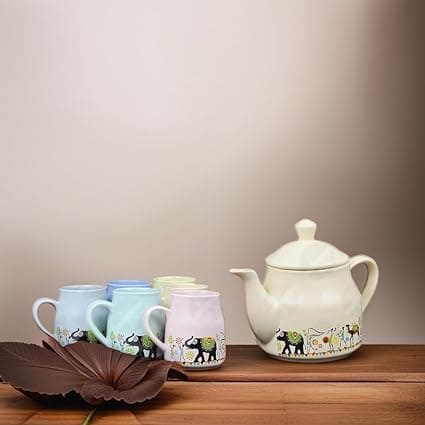 MITHILA HANDICRAFTS Pure Ceramic Pastel Flask Microwave Safe Tea Cups with Kettle Morning Set Ideal for Friends, Anniversary, Valentine Day, Birthday/1 Kettle + 6 Tea Cups (Multicolor)