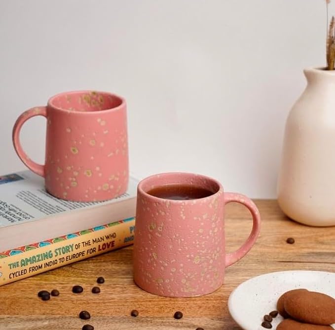 MITHILA HANDICRAFTS Shine Coffee Mug Set of 6 Ceramic Tea Mugs, Microwave Safe Coffee Mugs,Ceramic Tea Cups (280 ml Each) (Pink)