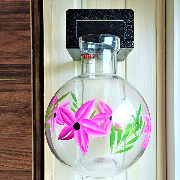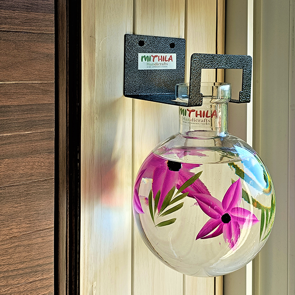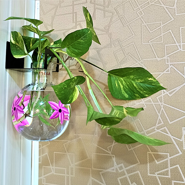 Mithilashri Round Flower Glass Vase With Iron Hanger 12X10 Cm Elegant Flower Designed Vase For Money Plant, Lucky Bamboo Plant
