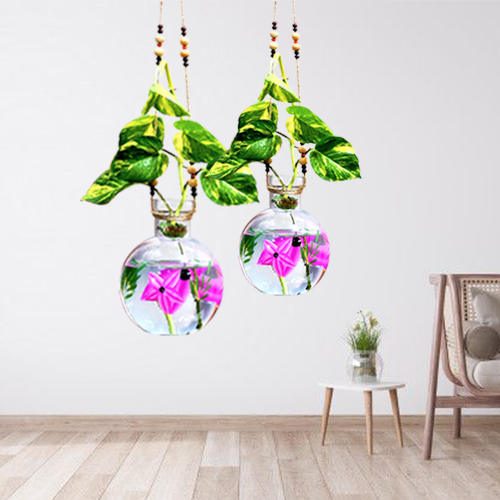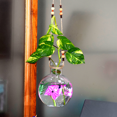 This Beautiful Ball Shaped Glass Vase Jute Rope with iron L Shape hanger can be placed natural and artificial plants, flowers, money plant, lucky bamboo plants etc. Unique and elegant showpiece to complete the beauty of your house. Perfect addition to your Home Décor, Living Room, Bedroom, Center Table, Side corners, Dining Room, Work Place and for Gift Purpose. Plants are the best source of freshness and positive energy.