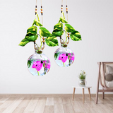 Mithilashri Glass Vase Set of 2 Round Hanging 20x16 cm iron L shape hanger for Money Plant Elegant Flower Designed Vase |Lucky Bamboo Plant | Elegant Flower Designed Vase | Flower Pot | Clear 20X16 cm