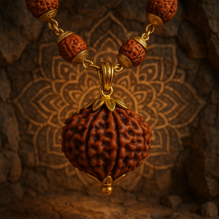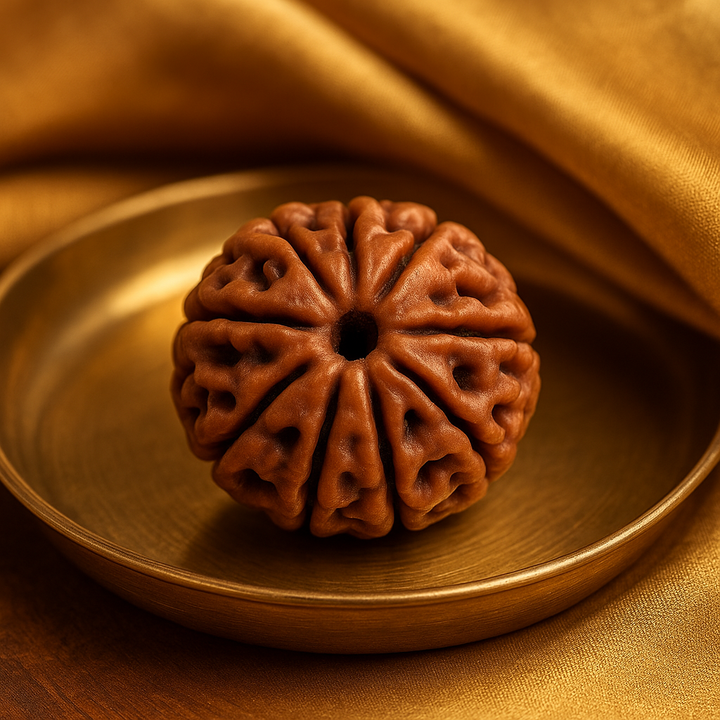 Wearing the Nau Mukhi Rudraksha invokes the protective energy of the Nav Durga forms, empowering the wearer with fearlessness, vitality, and self-confidence. It balances the Manipura Chakra (Solar Plexus), helping to regulate willpower, personal power, and emotional resilience.