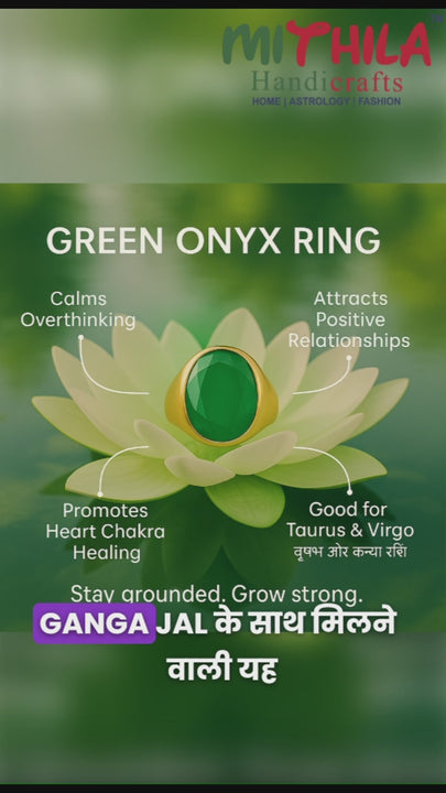 The Onyx Panchdhatu Ring is a powerful gemstone accessory known for its ability to provide stability, emotional strength, and protection. Crafted in traditional Panchdhatu metal with a golden finish, this ring follows astrological principles, featuring an open-back design that allows the gemstone to directly touch the skin for maximum effect.