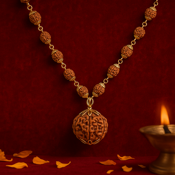 The Five Face Rudraksha (Panch Mukhi) is the most widely worn and spiritually balanced Rudraksha, symbolizing Lord Kalagni Rudra, a fierce form of Lord Shiva. This sacred bead represents the five elements (Pancha Tattva) and aligns the wearer with truth, righteousness, and spiritual awareness.