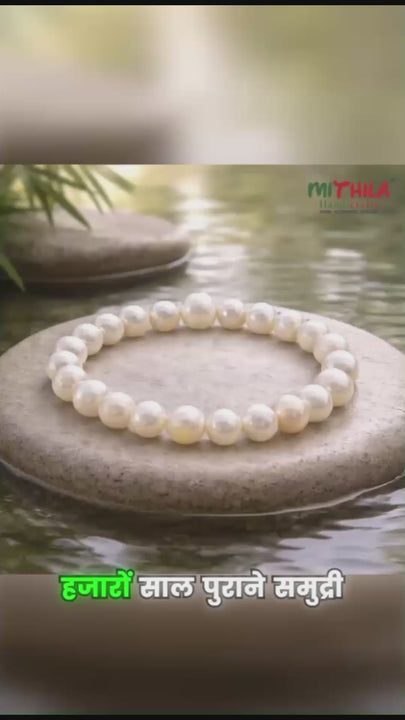 Pearls are believed to carry cooling and soothing vibrations that help reduce मानसिक अशांति, emotional fluctuations, and restlessness. Carefully selected premium-quality pearls are strung on a comfortable, durable stretchable cord, making the bracelet ideal for daily wear, meditation, or spiritual routines. Its soft natural luster adds a graceful and timeless appeal suitable for both traditional and modern lifestyles.