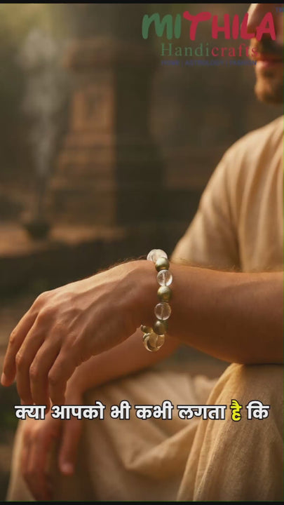 The Raj Yog Bandh Bracelet is a spiritually energized combination of premium gemstones—Sphatik, Golden Pyrite, and Lapis Lazuli—designed to invoke the blessings of Raj Yog in your horoscope. Raj Yog is one of the most auspicious planetary combinations in Vedic astrology, symbolizing elevated status, wealth, fame, and divine grace. This bracelet harmonizes the influence of Jupiter, Venus, and Saturn, enabling destiny to unfold in your favor. Sphatik (clear quartz) purifies your aura, Golden Pyrite attracts abundance and confidence, while Lapis Lazuli activates the third eye and enhances intuition and leadership. Handcrafted on a durable stretch cord and energized through Vedic rituals, the Raj Yog Bandh serves as your daily spiritual armor—ideal for those pursuing leadership, career growth, or spiritual ascent.
