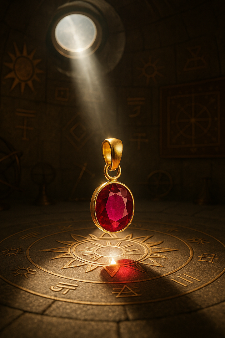Ruby (Manikya) Panchdhatu Pendant – Sun Planet Remedy | Lab Certified