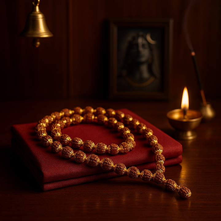 Rudraksha Mala with Panchdhatu Caps | Spiritual Kantha for Protection & Power