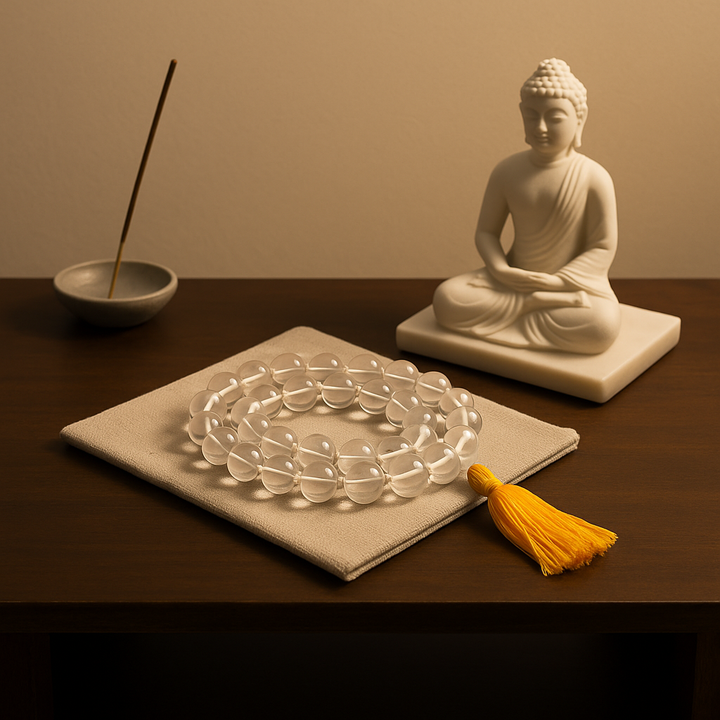 Sphatik Kantha | Natural Crystal Quartz Necklace | For Peace, Aura Cleansing & Divine Vibration