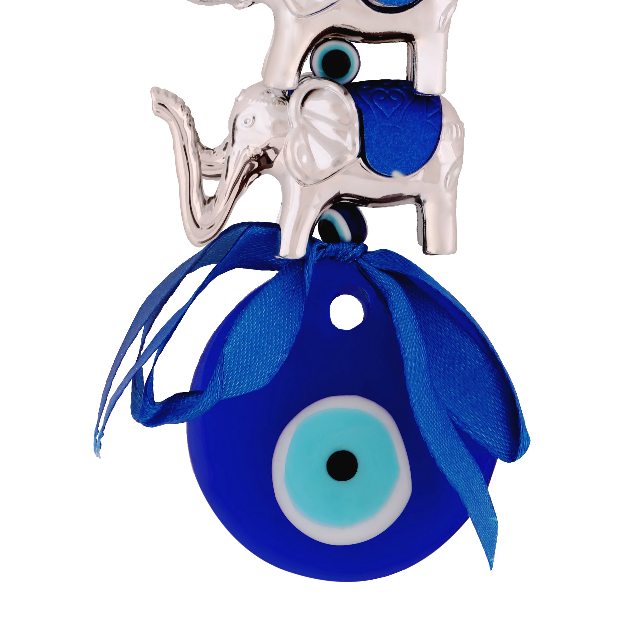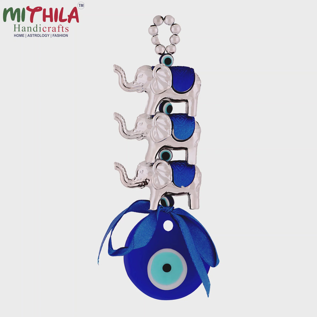 Mithilashri Turkish Evil Eye | Nazar Battu | Feng Shui Hanging | Three Elephant Evil Eye | | for Home-Car-Door-Office | Blue and Silver Color  |