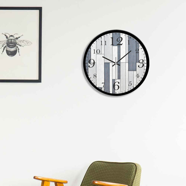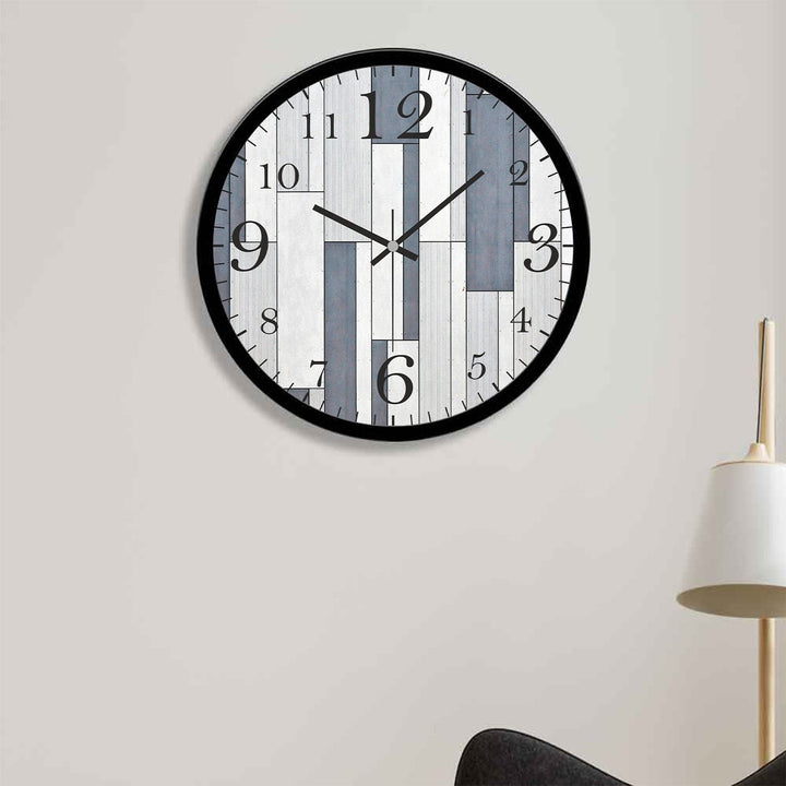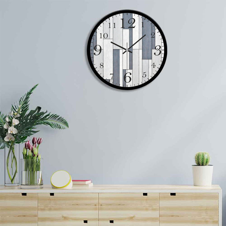 White and Blue Shapes Printed Wooden Wall Clock