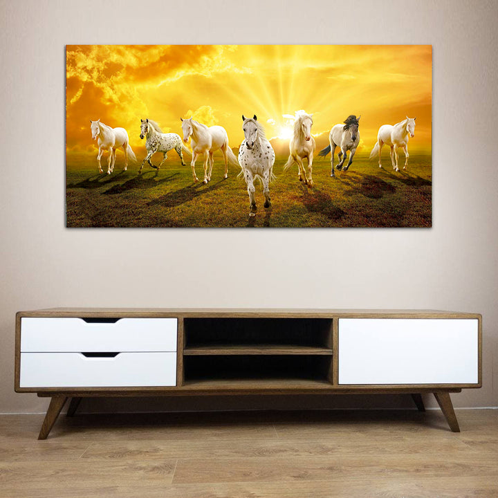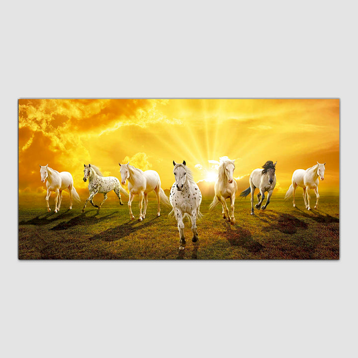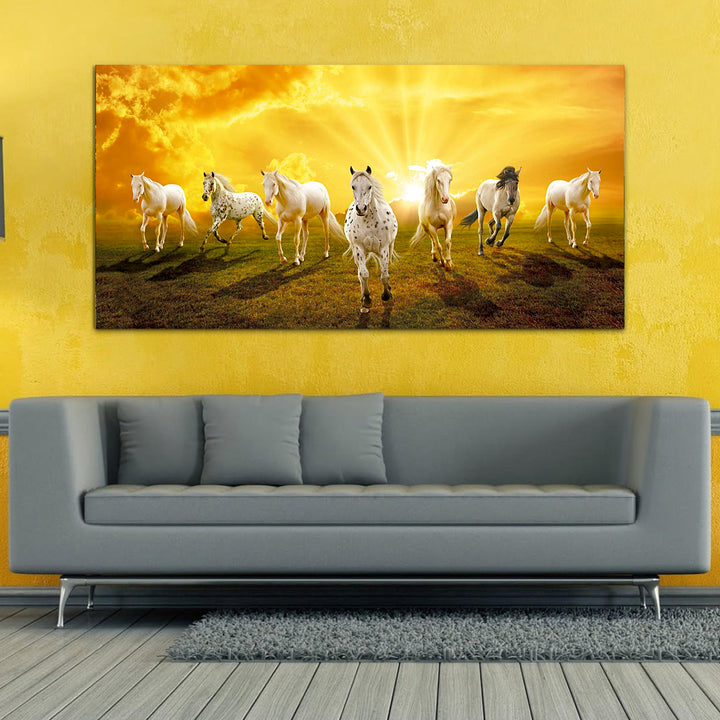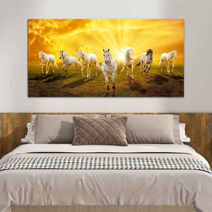 Seven Horses Running at Sunrise Premium Canvas Wall Painting