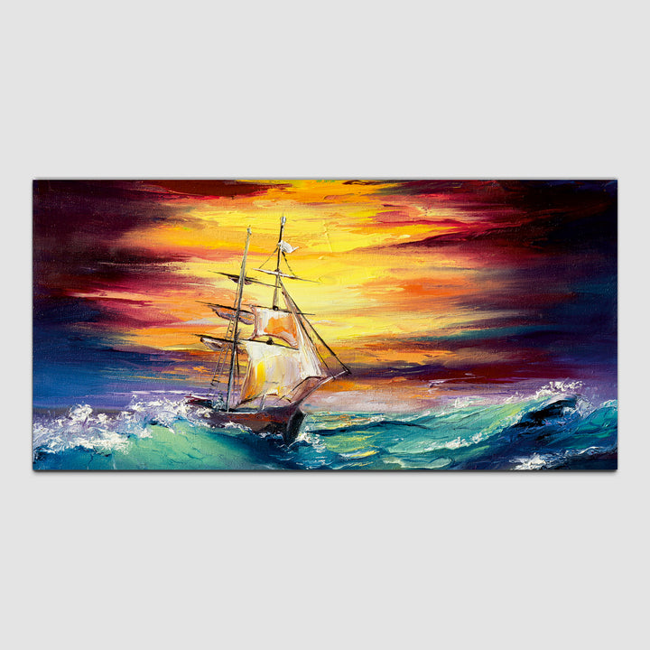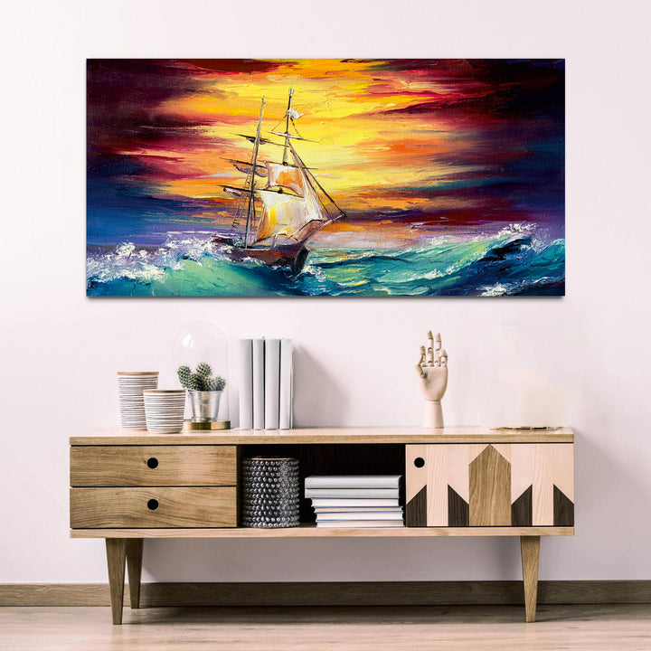 Abstract Boat under Water with Sunrise Canvas Wall Painting